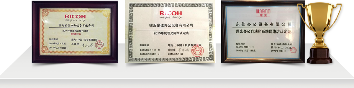 臨沂東佳辦公設(shè)備有限公司成立于1999年,是一家專賣臨沂理光打印機(jī),臨沂復(fù)印打印一體機(jī)等理光辦公設(shè)備及專業(yè)維修服務(wù)于一體的臨沂復(fù)印機(jī)租賃服務(wù)性公司,在多年來的努力拼搏下,公司發(fā)展的發(fā)展突飛猛進(jìn),自2002年至今連續(xù)十九年的理光辦公設(shè)備代理商,先后獲得了理光(我國)授權(quán)臨沂總代理,理光數(shù)碼復(fù)印機(jī),一體機(jī)臨沂總代理,理光辦公設(shè)備網(wǎng)絡(luò)認(rèn)證店,理光辦公設(shè)備維修認(rèn)定店等產(chǎn)品代理資質(zhì)及維修資質(zhì)。并配備了大量理光數(shù)碼辦公設(shè)備原裝零配件及其系列的純正耗材。